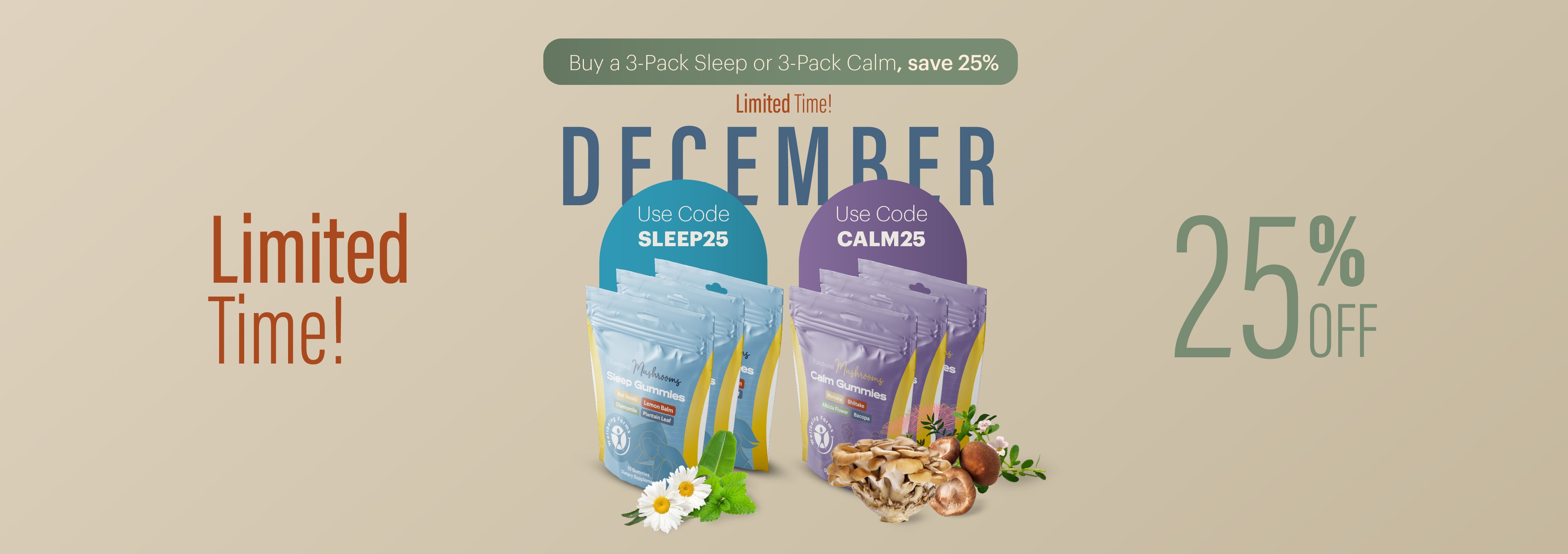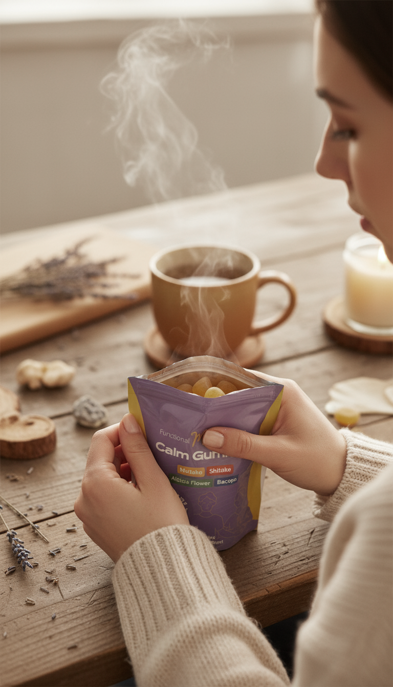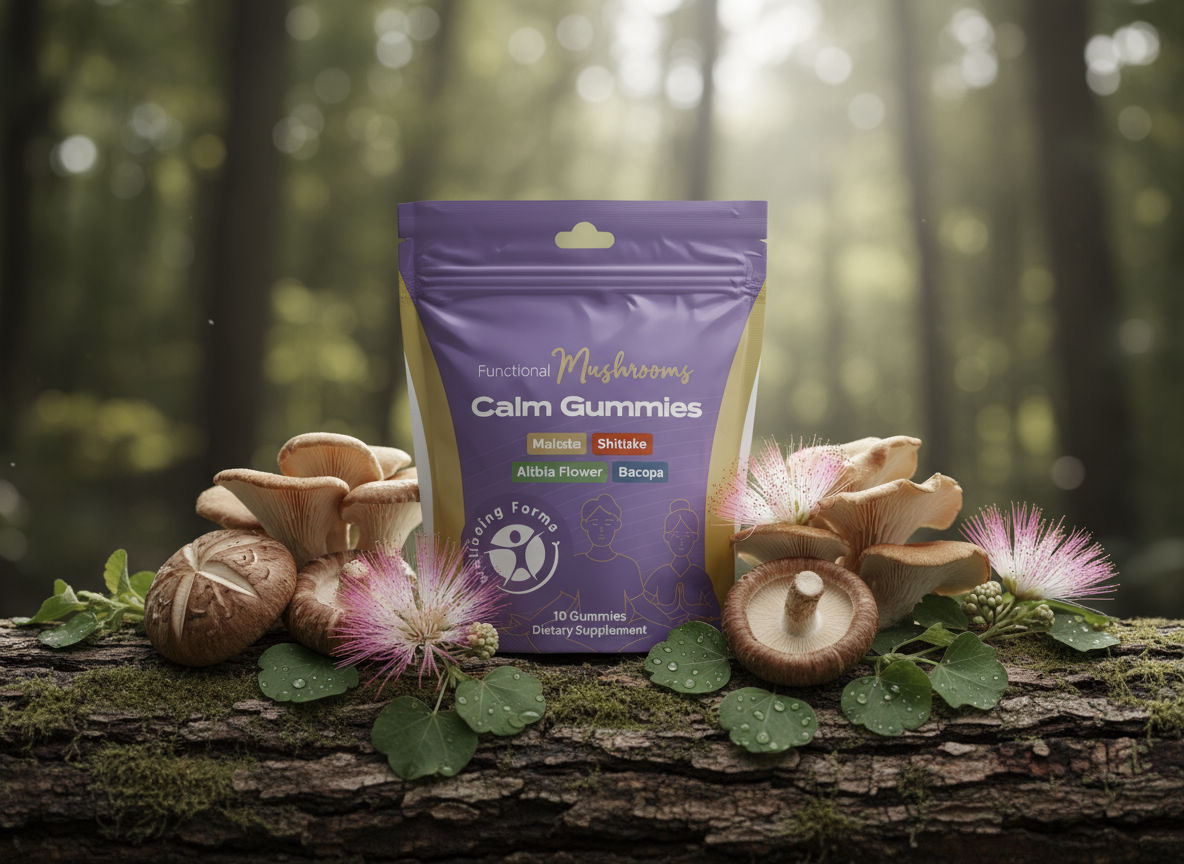 When the day feels overwhelming, let our Calm Blend Gummies help you reset. Made with high-quality Maitake, Shiitake, Albizia Flower, and Bacopa extracts, they’re designed to support a relaxed and steady mindset.
