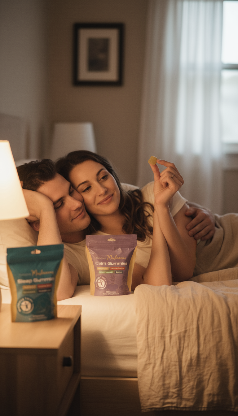 Natural mushroom-powered gummies that bring peace to your days and serenity to your night.