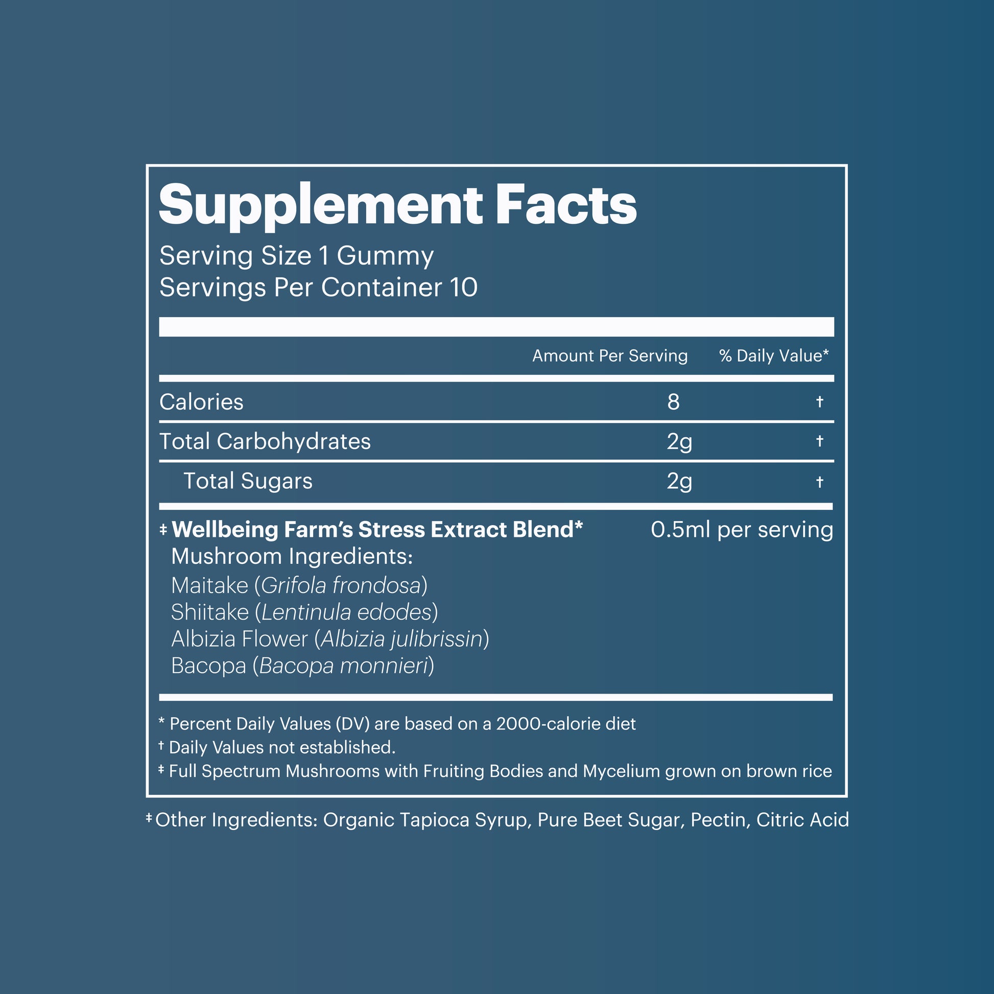 GMO Free / Gluten Free / Vegan / No Colors or Flavors / Alcohol removed for a naturally sweet taste. Extracts are used in our gummies, not powders.